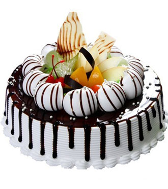 8寸鮮奶水果蛋糕,巧克力屑,時令水果搭配。