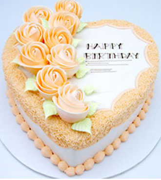 10寸鮮奶蛋糕,奶油玫瑰花,英文Happybirthy點綴。